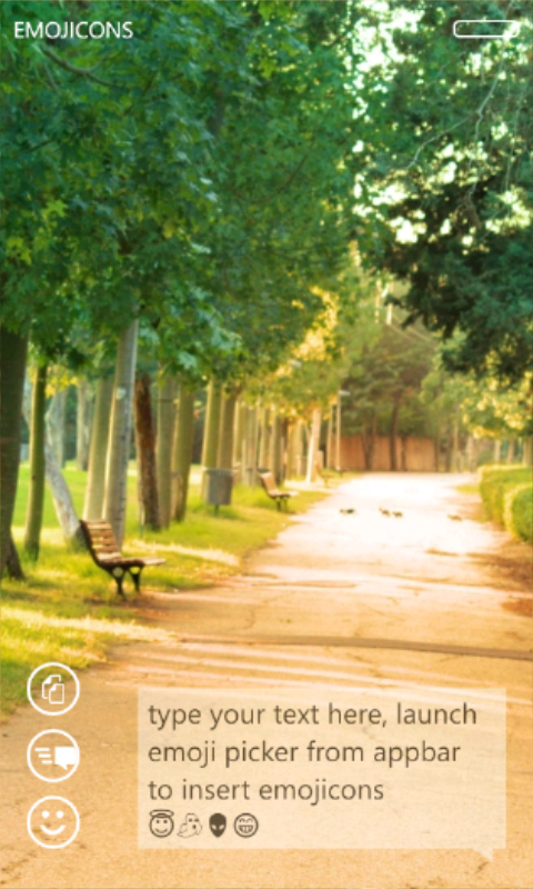 As the name suggests, this see-through mode will allow you to see through the phone while you are typing in your favorite emojicons. Not only the composing screen but the emojicons picker screen will also go see-through once you tap or slide over the title of app. We have included a demo of how this can be done in the app. The demo will be presented to you once you open the app for first time after installing or upgrading to version 1.1.